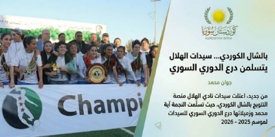 بالشال الكوردي… سيدات الهلال يتسلمن درع الدوري السوريمن جديد، اعتلت سيدات نادي الهلال منصة التتويج بالشال الكوردي، حيث تسلّمت النجمة آية محمد وزميلاتها درع الدوري السوري للسيدات لموسم 2025 ـ 2026، وسط أجواء احتفالية مميزة على وقع الأغاني الثورية الكردية في ملعب الفيحاء بالعاصمة دمشق، لتُختتم المناسبة بحلقات الدبكة الكوردية التي شاركت فيها اللاعبات وكامل بعثة الفريق.واختُتم الدوري السوري للسيدات رسمياً بإقامة المباراة الختامية التي جمعت سيدات الهلال من مدينة قامشلو بسيدات النصر من مدينة القنيطرة، وانتهت بفوز الهلال بثلاثة أهداف دون رد، سجلتها النجمة آية محمد، هدافة غرب آسيا للشابات لعام 2025.وكانت سيدات الهلال قد حسمْنَ اللقب قبل جولة من النهاية، بعد فوزهن على سيدات محافظة حمص، وصيفات البطولة، بهدف نظيف حمل توقيع آية محمد، في اللقاء الذي أقيم على ملعب المنشأة الرياضية في حمص.وتصدرت سيدات الهلال جدول الترتيب برصيد 27 نقطة، بفارق ست نقاط عن سيدات محافظة حمص، دون أن يتعرض الفريق لأي خسارة أو تعادل، كما حافظ على شباكه نظيفة طوال مشواره، ليُتوَّج بالعلامة الكاملة.ويُعد هذا اللقب الثالث توالياً لسيدات الهلال، بعد تتويجهن بلقبي موسمي 2023 ـ 2024 و2024 ـ 2025، في إنجاز يؤكد الهيمنة على الكرة الأنثوية السورية.يُذكر أن نادي الهلال، الذي يتخذ من مدينة قامشلو مقراً له، ومعظم كوادره الفنية والإدارية واللاعبات ينحدرون من القومية الكوردية، قد نال ترخيصه لمزاولة العمل الرياضي عام 2022، وحقق منذ ذلك الحين سلسلة من الألقاب في مختلف الفئات العمرية، أبرزها:دوري الناشئات (2022 ـ 2023)دوري الواعدات (2023 ـ 2024)دوري الناشئات (2023 ـ 2024)الدوري السوري للسيدات (2023 ـ 2024)الدوري السوري للسيدات (2024 ـ 2025)الدوري السوري للسيدات (2025 ـ 2026)